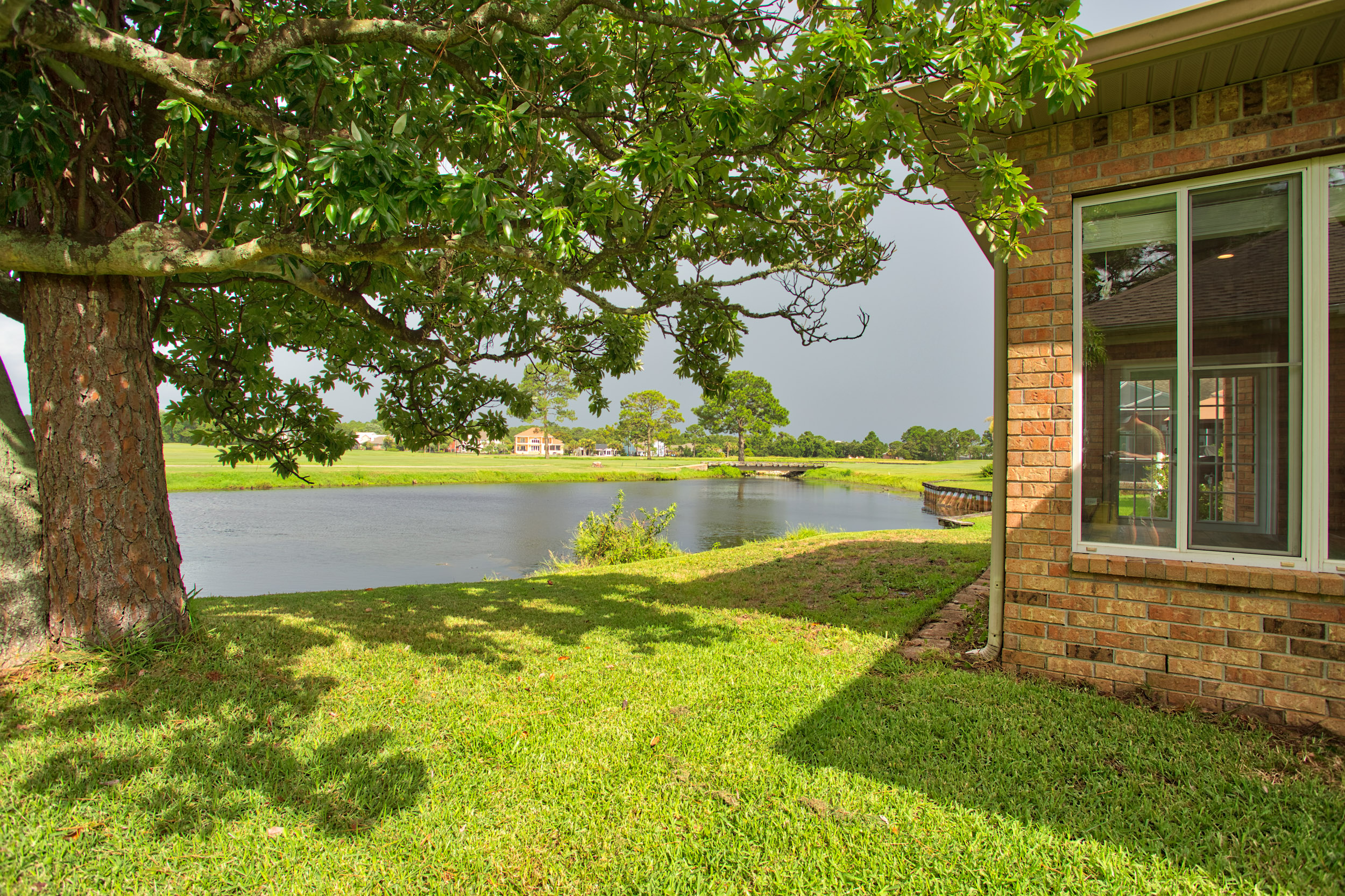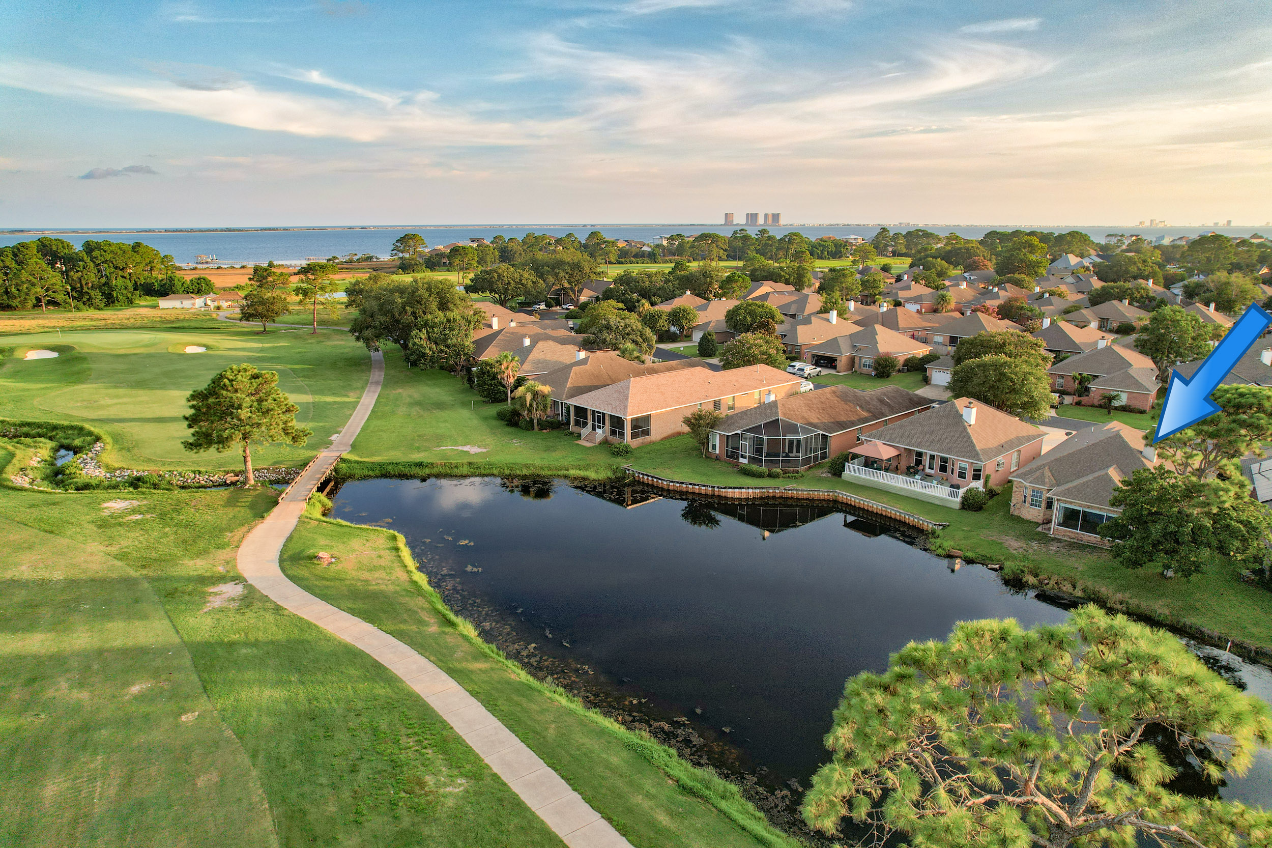Upon opening the door to this brick 3 bedroom, 2 bath home in Fairways of Tiger Point in Gulf Breeze, Florida you are welcomed with an unobstructed view of Fairway 13. Almost the entire rear of the home is a window view overlooking the lake, mature trees and open fields to one of north west Floridas best maintained golf courses. The first room to your left could be used for sleeping, work space, home gym or tv den. To your right and down the hall is a full bath, linen closet and additional bedroom leading into the laundry room with built in cabinets and new electric water heater, ready for a side by side electric washer and dryer. The laundry conveniently connects to the two car garage filled with natural light, built in cabinets and pull down stair attic access. The living area centers around the gas fireplace adorned with beautiful key stones. The designated dining room leads into the gally kitchen fitted with pantry, Frigidaire refrigerator, gas oven/cooktop and granite counter tops. Separate from the guest rooms is the master bedroom with natural light from 3 rear windows overlooking the golf coarse. The on-suite full bath has a double vanity with granite counter tops, wood look tile separate shower and private toilet. Relax with a book, nap or grab a paint easel while you enjoy nature in your backyard. Other features to note are wood look tile throughout the home, newly painted walls, crown molding, walking distance to the popular tiki bar at the turn, walking paths that lead to the sound, golf cart friendly roads, shopping, world class health care, grade A schools, emerald coast beaches, airports, interstate and churches. This home is ready for its new residents.
